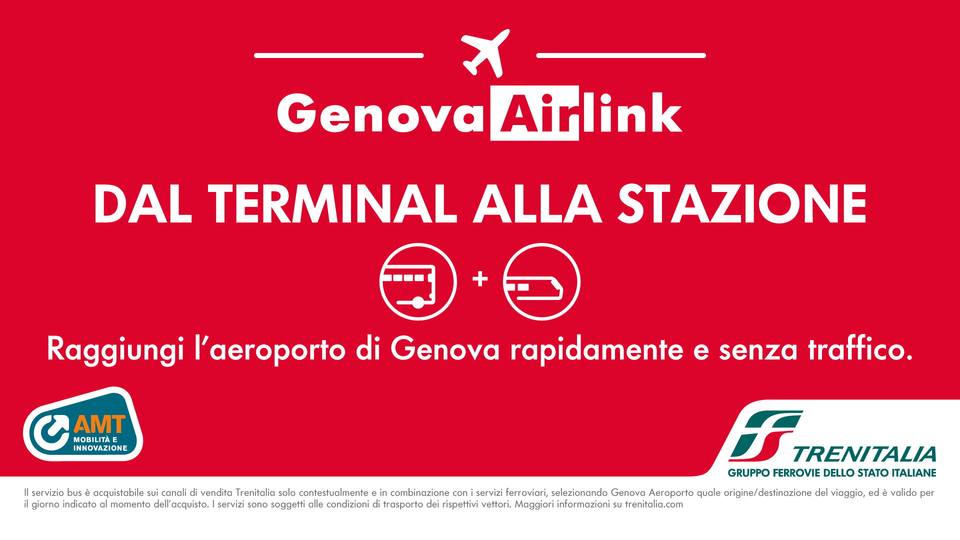 Il servizio Airlink è un progetto sviluppato da Trenitalia Regionale, già applicato con successo in molte città italiane, attivato ora anche a Genova grazie alla sinergia tra AMT, Trenitalia e Aeroporto di Genova finalizzata a offrire ai cittadini soluzioni efficaci di mobilità integrata.